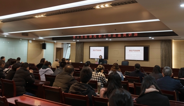 本次讲座是市人力社保局联合工会“弘扬传统文化、建设美丽人社”系列活动之一。通过举办书法鉴赏讲座,让广大干部职工在紧张的工作之余,欣赏书法,修身养性,陶冶情操,并将“入古出新”的书法之道融汇贯通到我们的工作、学习和生活,为建设美丽人社工作添砖加瓦。